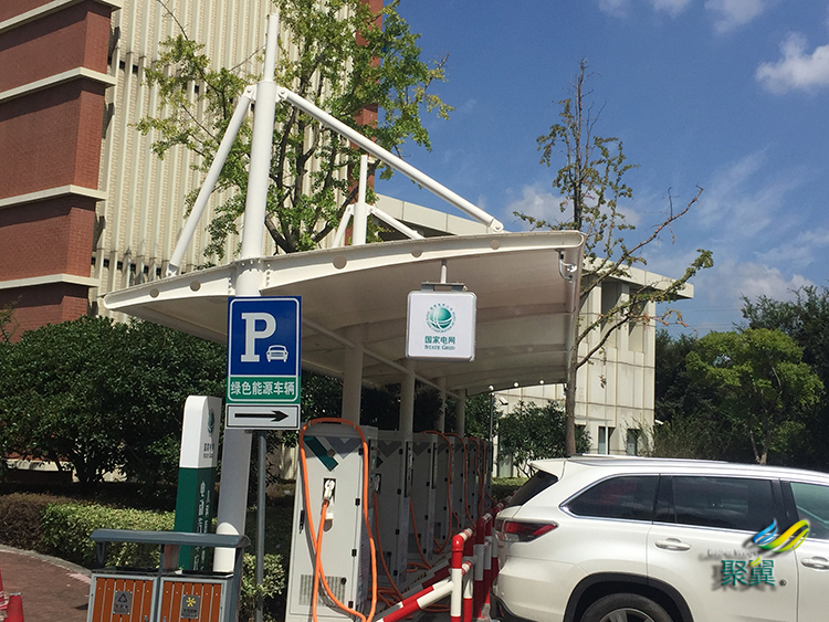 上海兒童醫院充電車棚項目介紹:充電樁車站車棚設計及電流功率說明,國家電網項目充電車棚的充電樁充各個功率充電車棚設計制作符合鋼(膜)結構設計執行以下規范