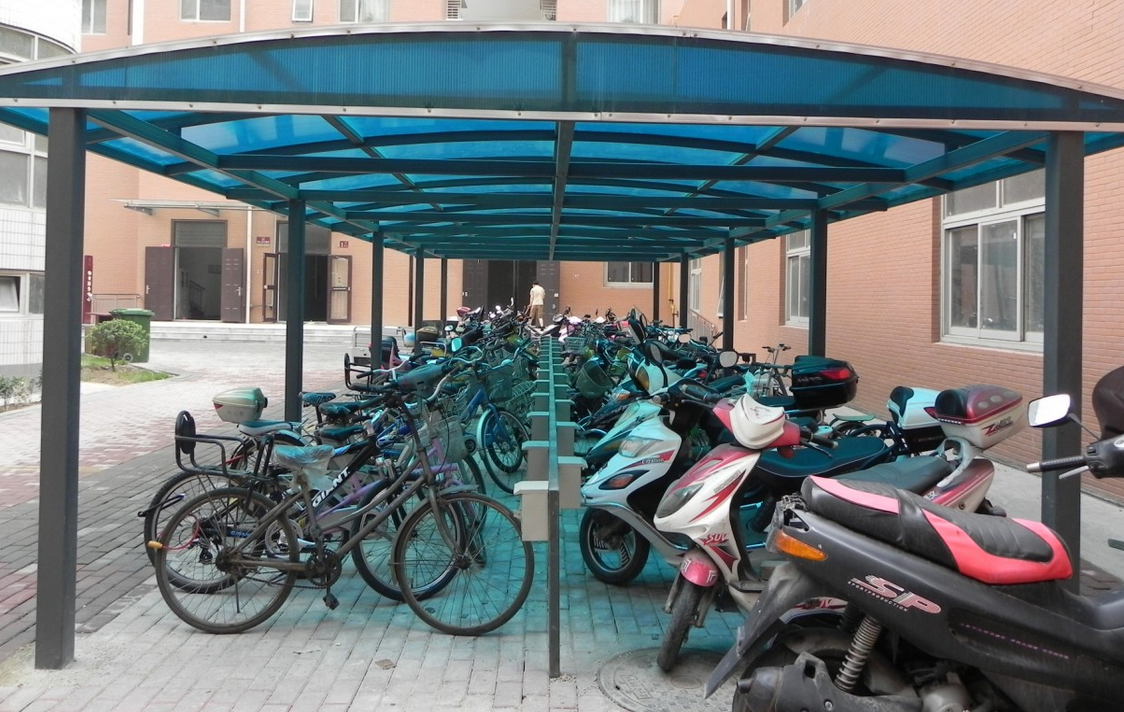 其實從市面上來說,自行車停車棚的選材和款型有很多種,不過大致上也就那么幾款流行的。下面我就來介紹一下幾款比較流行的材質自行車停車棚。