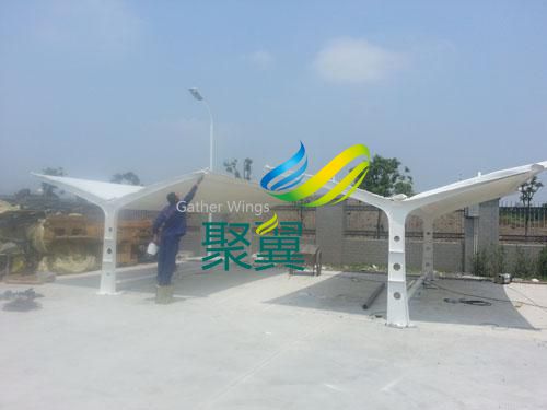 詳細>>徐州膜結構車棚,頂部采用進口面料,主梁厚度用6-8毫米,車棚擁有全自動鋼、膜結構生產線(車棚...