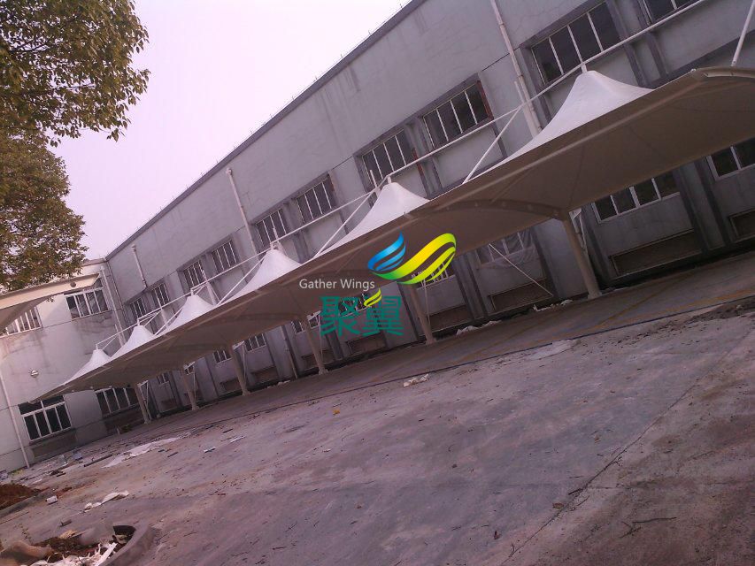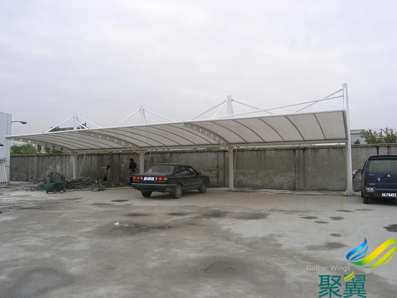 詳細>>上海市松江工業園區膜結構車棚長24米,寬6米,車棚款式多樣,可根據現場尺寸量身定制,車棚遮陽...