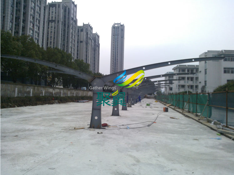 詳細>>奉化溪口鎮寧波職業技術學院膜結構車棚采用異型鋼(厚6mm-8mm)焊接成型,熱鍍鋅處理加工等制作...