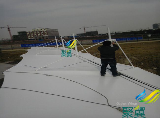 詳細>>杭州膜結構車篷于2013.11.20完美竣工,車篷采用進口的PVDF膜材。PVDF膜材料的機械強度與堅韌強度...