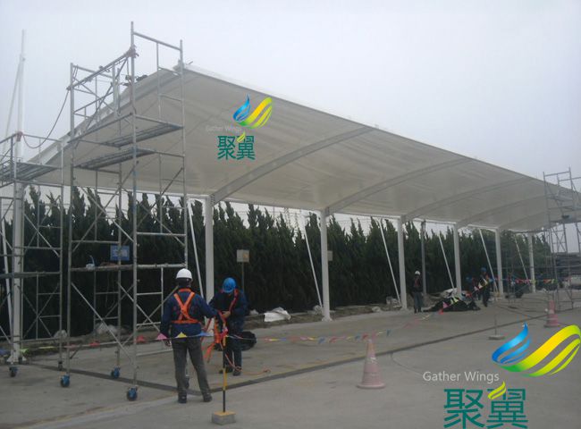詳細(xì)>>膜結(jié)構(gòu)車蓬使用壽命及特點:膜結(jié)構(gòu)車棚的篷布材質(zhì)是膜材,而膜材的最大特點是強度高、耐久性好、...