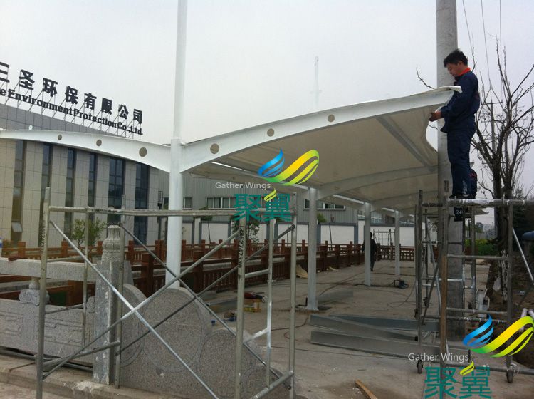 詳細(xì)>>鎮(zhèn)江膜結(jié)構(gòu)停車棚選用進(jìn)口PVDF膜材料配鋼結(jié)構(gòu)骨架,表面處理采用進(jìn)口船用底漆,炳烯酸聚氨酯面漆...