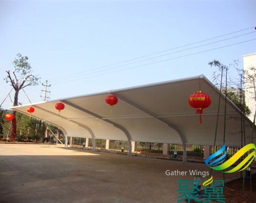 詳細>>廠區停車棚(膜結構停車棚)是依靠膜自身的張拉應力與支撐桿和拉索共同構成機構體系。在陽光的照...