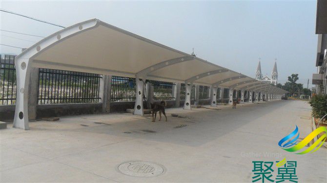 詳細>>學校教育培訓機構停汽車棚車,選用(膜結構車棚)第一、面料質感好,使用壽命長久耐用。第二、骨...