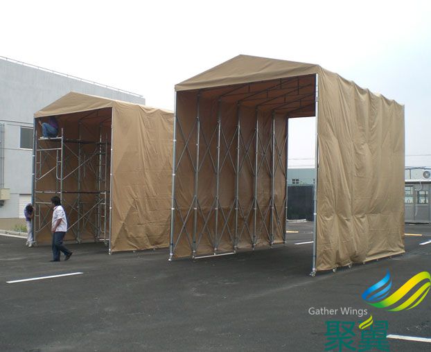 詳細>>推拉式車棚也稱折疊式車棚,主要用于汽車、貨物等遮陽,屬于臨時站地的遮陽建筑。跨度是固定的,...