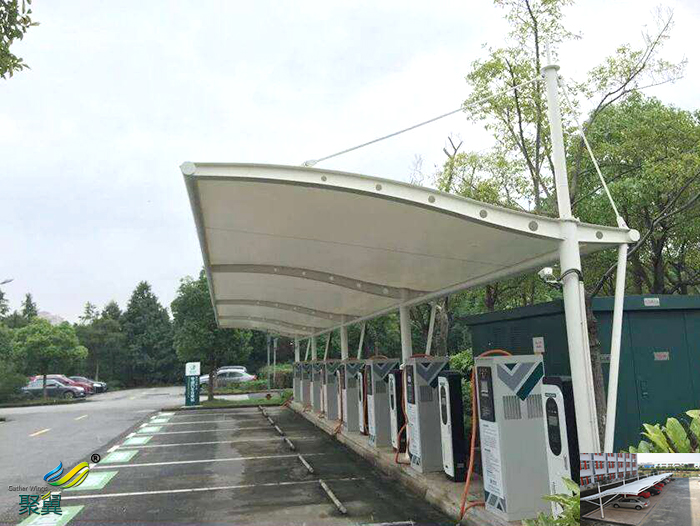 膜結構車棚的優點,藝術性,膜結構做為一種新型建筑結構類型,打破了純直線建筑風格模式