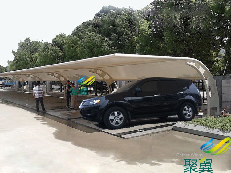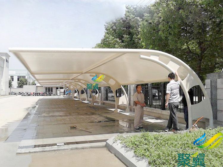 JY-90膜結構車棚系列這90S款:車棚主體采用異型鋼結構,精密焊接,表面防銹處理配環氧富鋅專用鋼結構油漆。面料推薦PVC膜布張拉力4000N材料,正常使用情況下質保8年。200-300平方米加工周期約為7天,現場施工安裝工期約為5-7天。為了保證膜結構車棚產品準時交貨,下單后鋼構及膜布材料同時進行精加工,以先后順序合理安排加工和現場施工。