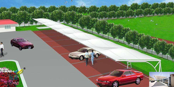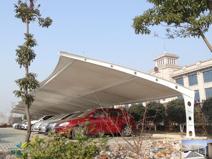 膜結構停車棚有很好的透光能力,透光率達到了百分之十三,而其他類型諸如彩鋼板等透光率極差,導致車棚會由于長時間的暴曬變黃損壞,但是膜結構高透光率就保證了其不會出現這樣的問題,從側面說明也是延長了其自身的使用壽命。 膜結構停車棚自身的重量特別輕盈,再加上自身設計屬于建筑織物,能夠隨意變形且承受高強度沖擊,而像金屬材料等車棚就不能夠隨意伸展和拉伸,這也是膜結構使用壽命更長的一個原因,因此我們賦予了膜結構不破玻璃的美稱。防火性和耐久性-理想的建筑用膜材料。