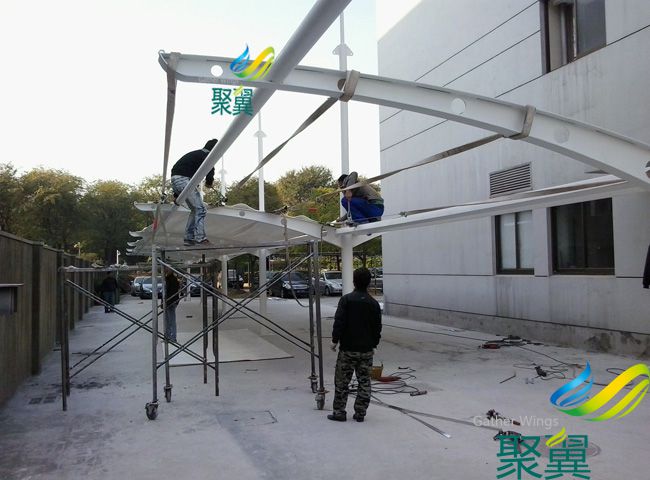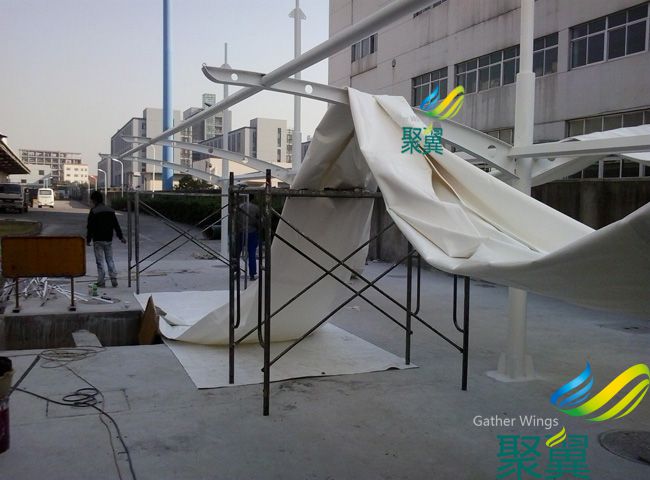 杭州膜結構自行車篷于2013.11.20完美竣工,車篷采用進口的PVDF膜材。PVDF膜材料的機械強度與堅韌強度高,極高的防霉菌性和高耐磨性。耐熱穩(wěn)定性好,阻燃,低燃,溫度提升過程中抗蠕變性好,純度高,抗紫外線和核輻射性。