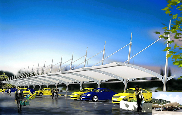 膜結構停車棚藝術性:除了一般雨蓬不可比擬的實用、耐用、遮風擋雨的功能外,更是一座雕塑,一件藝術品,給人美的視覺享受。其柔美,其曲線,其剛柔并濟,其豐富造型,其潔白無瑕,讓人眼前一亮,回味悠長。