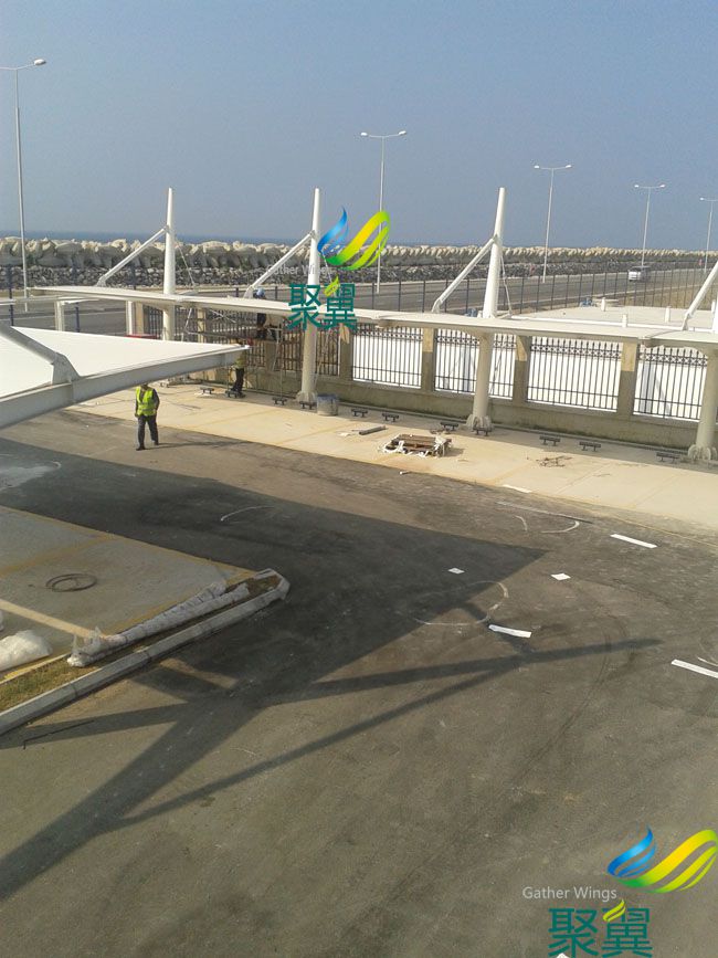 斯里蘭卡膜結(jié)構(gòu)車(chē)棚材料選用了進(jìn)口結(jié)構(gòu)建筑材料。車(chē)棚骨架,表面處理采用進(jìn)口船用底漆,炳烯酸聚氨酯面漆。