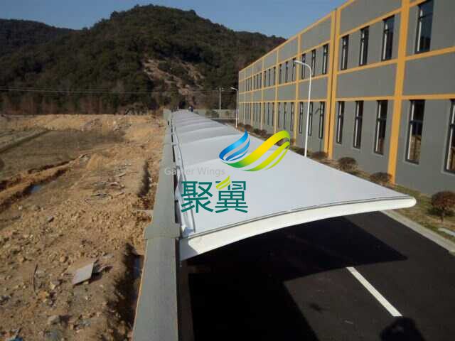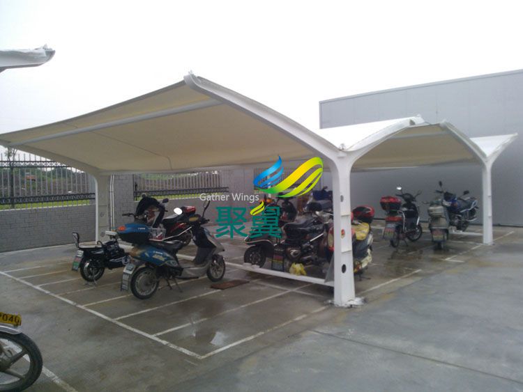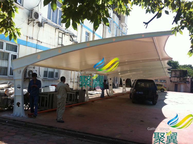 浙江寧波膜結構車棚采用國際先進技術,根據實際需要設計出來的一款車棚,相對于傳統的地下室停車,具有簡便、快捷效果。寧波車棚采用國產面料,面料耐久性好、防火難燃、透光性好!車棚鋼材選用:高強度優質鋼材,拋丸防銹處理,表面噴漆,熱鍍鋅螺栓,面漆采用橡膠面漆環保耐用。詳情可電話咨詢我司:4008-613-119(見下圖):