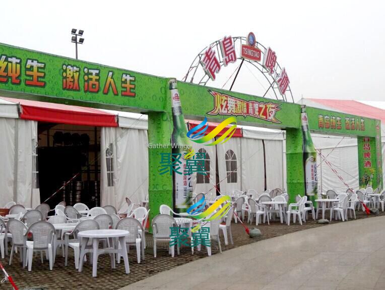 啤酒節篷房是一種新型的建筑,由可移動鋁合金主體框架和PVC篷布組成,具有以下特點: