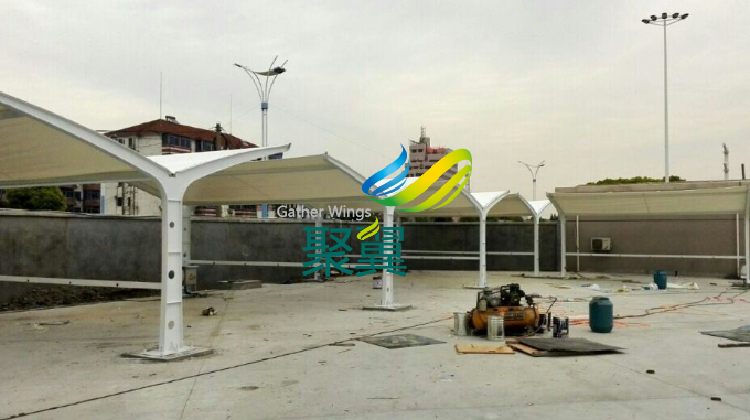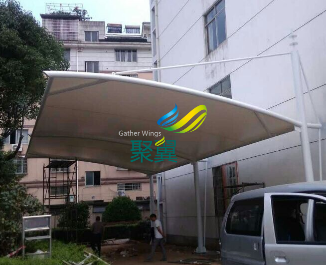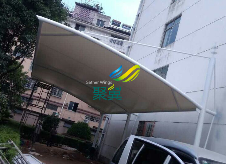 JY-10汽車停車棚充分利用了有限的停車空間,簡潔、大方實用的最佳占地面積。主體采用Q235鋼材料,鋼結構專用底面油漆。車棚面料選用國產PVC1100g,膜材強度高、耐久性好、防火難燃、自潔性好,不受紫外線影響,使用壽命8-10年左右。需膜汽車停車棚可以咨詢我司,詳情電話:4008-613-119(24小時客服熱線)