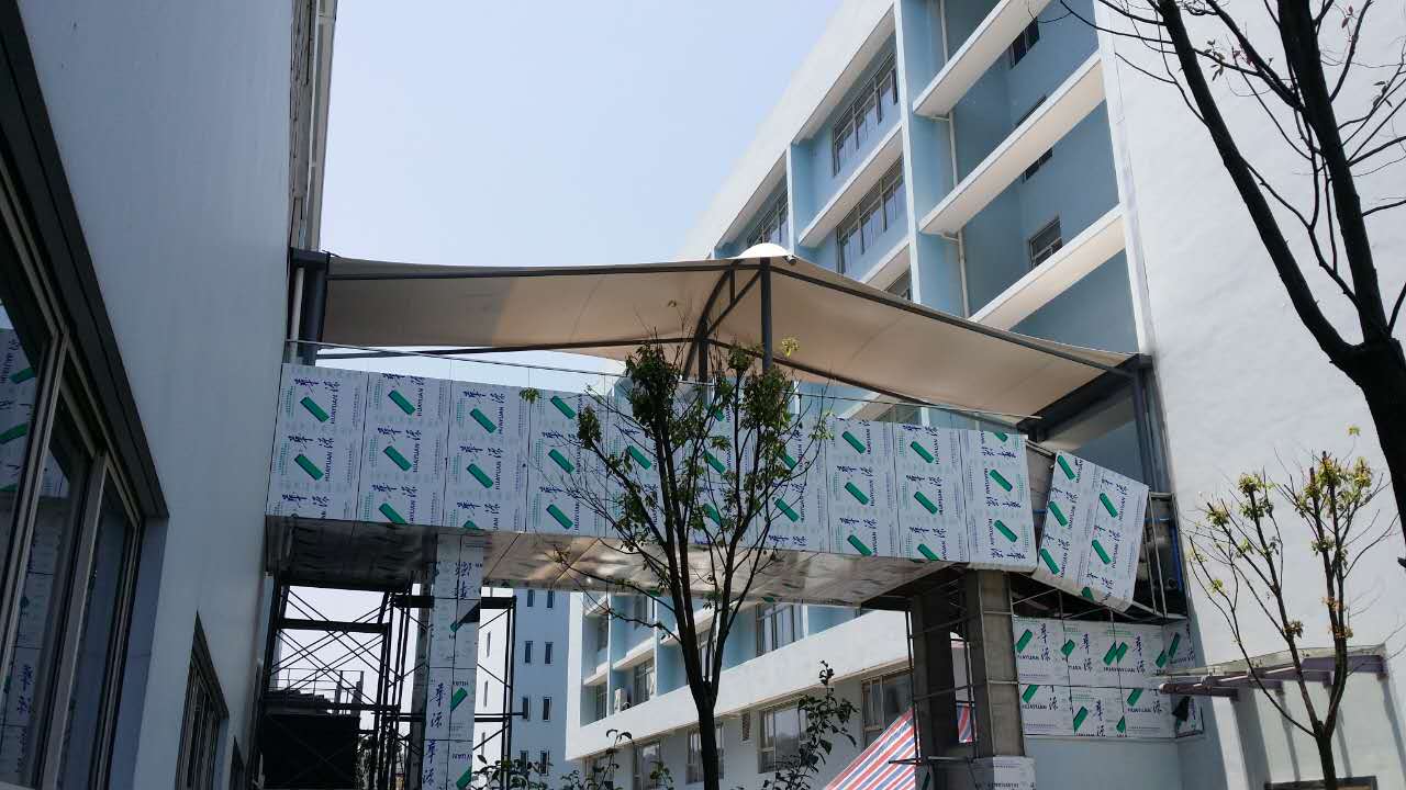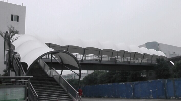 1、藝術、美觀膜結構以造型學、色彩學為依托,可結合自然及民族風情創意出曲線和造型,且造型優美、風格各異、飄逸自然,膜結構建筑溶技術、藝術、自然美于一體,每一座膜結構建筑都是一道亮麗的風景線,被譽為21世紀最有代表性與充滿前途的建筑形式。 2、透光、節能、環保、抗紫外線:膜材具有優良的透光性,透光率為20%-95%,白天可以得到自然的漫射日光,節約大量照明能源,另外膜材具有反射光熱作用,可以節省部分作用于空調的能源。 3、耐候性好,使用壽命長: 常用膜材以涂層聚脂織物纖維為主要材料,表面加上100%PVDP、涂層,物理性能可靠穩定,確保其使用壽命在20年以上。 4、自重輕、抗震性能佳: 膜材料自重僅為鋼結構1/8,混凝土的1/40,可以建成大跨度的建筑。膜結構的預應力使其建筑膜材尺寸持久穩定,能夠抵抗狂風、大雪、地震等。 5、防火、防潮、自潔: 膜材料表面經防護涂層處理后,不吸水、不受潮、抗磨損,防火阻燃,且落在膜材表面的灰塵可以靠雨水的自然沖洗達到自潔效果。