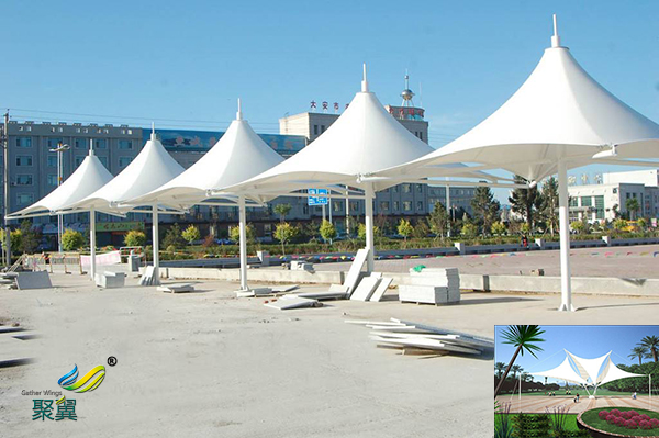 膜結構已經在各種公共場所廣泛使用。在商場、運動場、音樂廳等都可見到采用膜結構技術各種造型的屋頂。