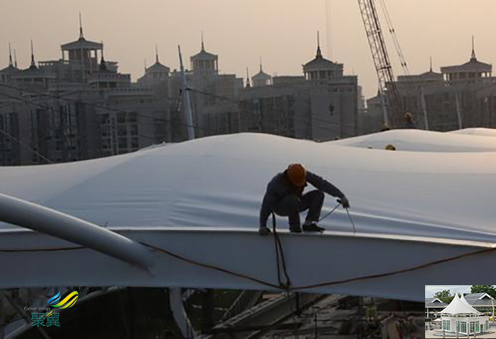 膜結構形狀變幻多端,由于其本身的特性(材質自重輕,支撐方式靈活)使得設計師可以在設計上充分發揮天馬行空的想象力,大家如果留意的話就可以看到大部分膜結構建筑造型非常活潑優美打破了傳統建筑形式的那種沉悶,非常具有張力及雕塑感,勢能能展現現代氣息的建筑形式之一。通過膜材和透光保溫材料的適當組合,可以使含保溫層的多層膜具有透光性。即使光譜透射只有幾個百分點,膜屋面對于人眼來說依然是發亮和透光的,具有輕型屋面的觀感。