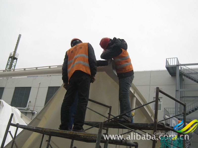 聚翼膜布代安裝服務!(見下圖1-2) C.膜布批發PTFE膜材料。PTFE膜材料的織物基材為玻璃纖維,纖維的直徑范圍應在3.30~4.05μm 范圍內,重量應大于150g/m。涂層的主要材料應為聚四氟乙烯樹脂,含量應不低于90%,涂層的重量在應大于400g/m。PTFE膜材料的厚度宜大于0.5mm。PTFE膜材的最大特點是強度高、耐久性好、防火難燃、自潔性好,不受紫外線影響,具有高透光率,膜面自潔性能保持期:5-10年,透光率為80%,對熱能反射率73%,熱吸收量很少。我公司生產加工的PTFE膜材料按膜布重量計算有800g,950g,1100g,1200g,1300g每平方等。 膜布批發選擇聚翼選擇誠信, 膜布加工車間24小生產加工,準時交貨,守時誠信,信賴聚翼!全國24小時客服電話:400-021-3310期待您的來電!聚翼用心讓您放心!