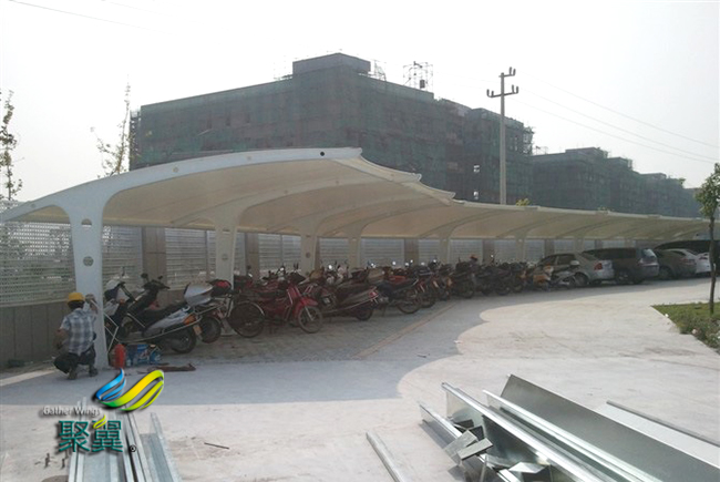 膜結構車棚膜材隨著現代精細化工科技的進步而不斷發展,其中膜材本身的張拉力和彈性都是重要的選擇標準。膜結構車棚制作人員提到:作為一種膜結構車棚建筑材料,膜材首先必須具有較高的承載力和較好的耐久性。所以最初的膜材主要由中間的纖維紡織布基層和外涂的樹脂涂層組成。