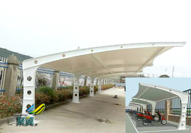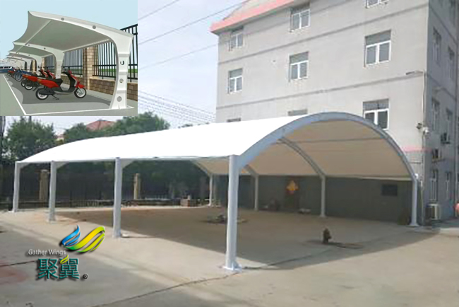 膜結構車棚經濟性:研究表明,長期露天停放的車輛,性能損耗速度比車棚內停放車輛快一倍。而采用膜結構車棚雨蓬更能真正呵護您的愛車,減緩您愛車的老化速度。從經濟角度來說,投入不多卻大大延長您座騎的壽命。
