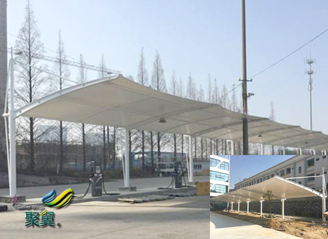 膜結(jié)構(gòu)車棚自行車棚所選用的膜材具有卓越的阻燃性和耐高溫性,故能很好的滿意防火請求。因為膜結(jié)構(gòu)車棚構(gòu)造自重輕,又為柔性構(gòu)造且有較大變形才能,故抗震性能好。拼合成型及骨架的鋼構(gòu)造、鋼索均在工廠加工制造,現(xiàn)場只需拼裝,施工簡潔,故施工周期比傳統(tǒng)修建短。