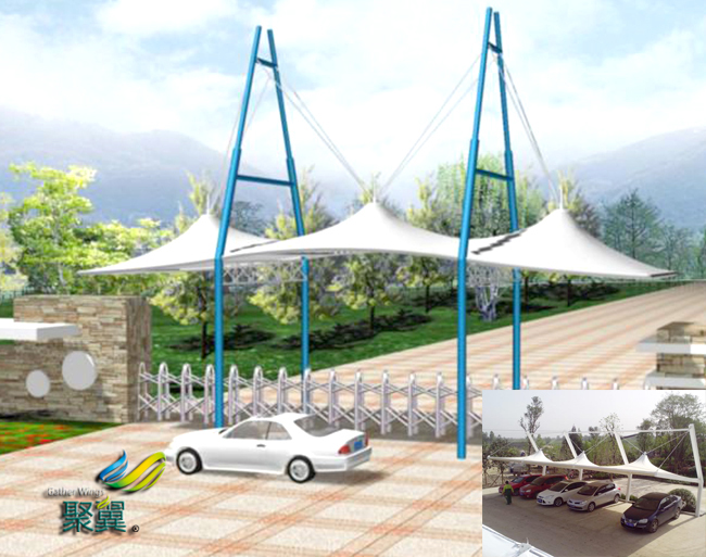 膜結(jié)構(gòu)車棚是提供給車輛停泊的地方,使車輛避免了風(fēng)吹雨打。來(lái)保護(hù)自行車,汽車等不受損傷。在膜結(jié)構(gòu)車棚未出現(xiàn)之前,市場(chǎng)主要的是鐵制車棚,鋁合金車棚,彩鋼車棚等。這些膜結(jié)構(gòu)車棚都是采用金屬構(gòu)件來(lái)制作,因此具有笨重,形式單調(diào)的缺點(diǎn),沒(méi)有個(gè)性和美觀。