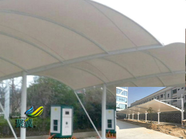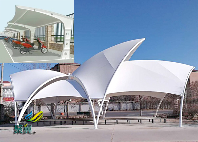 膜結構車棚是一座雕塑,一件藝術品,給人美的視覺享受。其柔美,膜結構車棚曲線,其剛柔并濟,其豐富造型,其潔白無瑕,讓人眼前一亮,回味悠長。膜結構車棚輕便性:重量輕,絕對保證棚下人和物的安全。但由于荷載作用下膜結構車棚材料會產生變形,膜面坡度較小處可能會有積水。