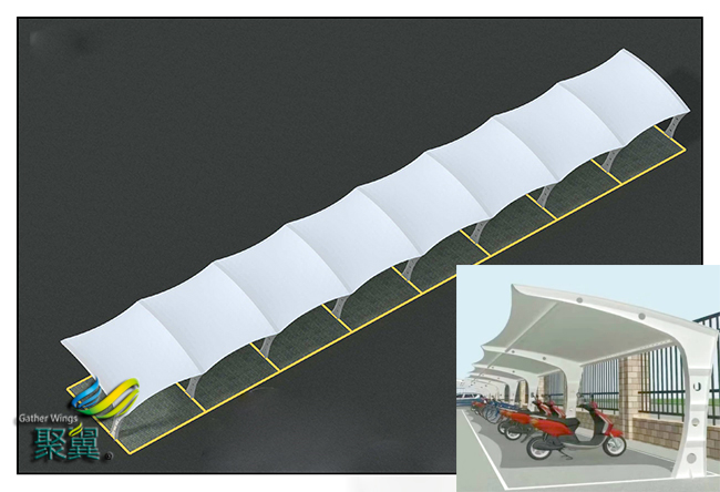 我們還有統一個小技巧來增加膜結構車棚的牢固度,因為膜結構車棚成型的原因是根據膜材料的張力來是棚頂鋪張開來,這樣我們可以把棚頂用不銹鋼管連接起來,這樣能有效的抵御風雨的侵襲。