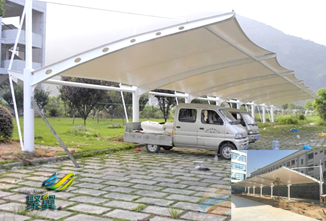 最后在設計完膜結構車棚的時候根據(jù)地區(qū)氣候和客戶實際情況,我們需要選擇占用面積最小的材料來安裝膜結構車棚。