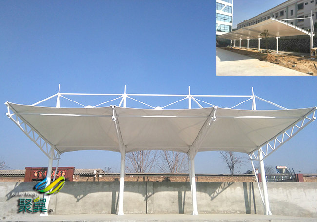 隨著都市現代步伐的加快,汽車成為任何一個都市不可缺少的交通工具。我國由于汽車工業高速發展,城市的汽車擁有量成倍上升,但城市建設規劃沒能盡快適應這一發展要求,常常是車無停放之地。所以在建設群規劃時就應充分考慮停車場的問題,膜結構車棚的建設和規劃當成現代城市建設規劃的重要組成部分,變得越來越重要。鑒于此,膜結構車棚造型在停車場建設中也以膜結構車棚優美的造型和實在的功能擔當重要角色。