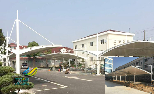 膜結構車棚構造其實很簡單,主要是利用高強度膜結構的布和支架來搭建起來的簡單建筑,利用膜結構車棚材料良好的張性覆蓋在支架上,從膜結構車棚的結構形式上看,與以前是車棚有很大的不同,只要準備好材料就可以施工了。