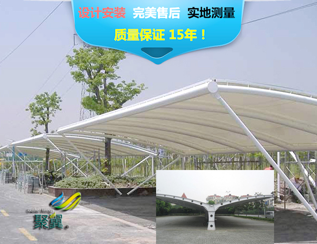 膜結構停車棚采用先進的著色技術。由于張拉膜結構的固有特性,它可以滿足從簡單的遮陽結構到功能復雜的大型建筑物的許多不同的建筑功能要求,并且膜結構停車棚最適合于一些實用要求。靈活的數據具有光傳輸和紫外線防護的功能,廣泛應用于一些戶外建筑和環境隨筆。膜結構停車棚由高性能織物制成,或者通過氣壓支撐膨脹到膜結構停車棚膜中,或者用柔性電纜或剛性支撐結構緊密涂覆以形成一定的剛度。、可以覆蓋大跨度??臻g結構體系。