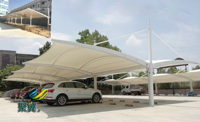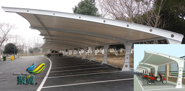 膜結構車棚建筑作為新材料、新建筑已被推廣應用,基于膜結構車棚表面經過特殊處理的膜材具有壽命長及自潔性好等特點,使得本產品有別于常見的普通建筑。