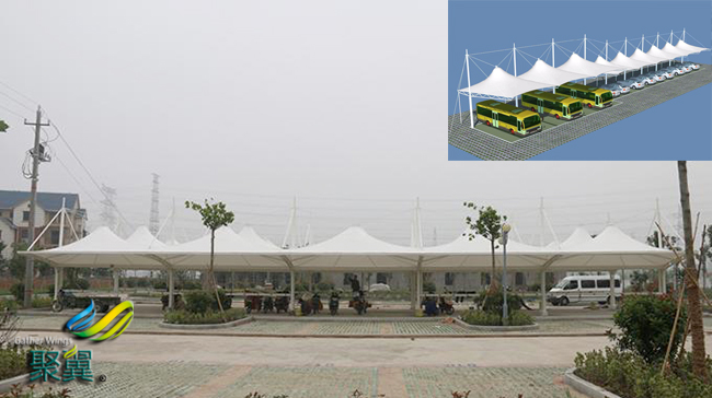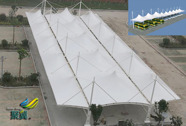 膜結構車棚是一種公用建筑物,是由建設單位出資進行修建,所以這種產品的首要要求就是耐用穩固,金屬膜結構車棚都是金屬支撐柱,然后其上進行焊接等工藝加裝頂棚。