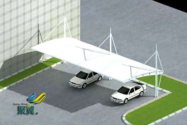 膜結構車棚拼合成型及骨架的鋼結構、鋼索均在工廠加工制造,現場只需拼裝,膜結構車棚施工簡潔,所以施工周期比傳統修建短。