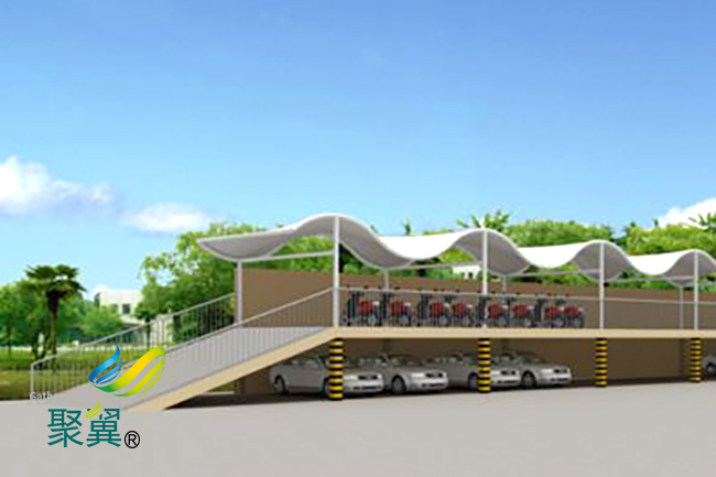 膜結構車棚自行車棚也是一種綠色交通設施,是市民們的自行車停放場所。創造出更好的膜結構車棚自行車棚關于城市的綠色環境大有協助。