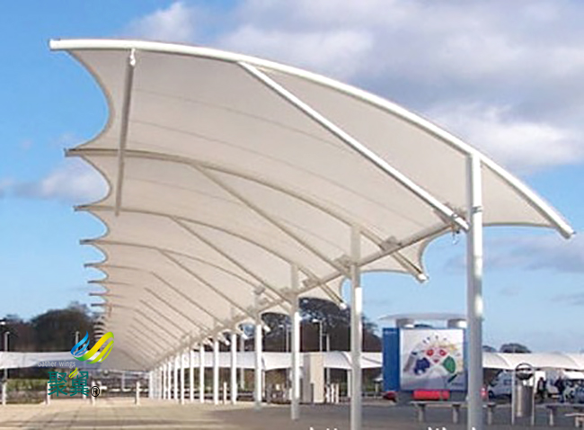 膜結構車棚膜材的支撐結構受力更小,支撐材料更簡便,結構顯得輕盈美觀大方。膜結構車棚膜材韌性高、耐腐蝕性強、強度高的特點,簡直就是環保領域應用材料的絕佳選擇。