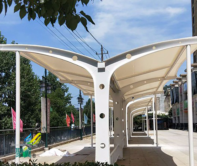 當然在膜結構車棚的應用過程中,我們不可避免的會遇到一些膜片的撕裂現象,所以日常我們應當加強其保養,如在膜結構車棚設計過程中要確保其膜面在張拉之后有足夠的剛度,在膜結構車棚細部構造設計中也要考慮其次張力。
