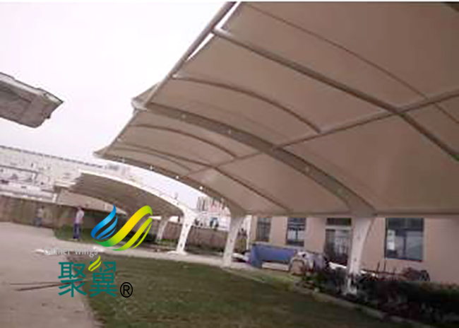 倘若膜結構車棚膜材料表面有松弛現象出現,此時我們需要對其進行二次張拉。在膜結構車棚節點上,也要確保有足夠的靈活度與自由度,這樣在環境風力比較大的時候就可以比較自由的應對了。膜結構車棚張拉過程要注意循序漸進,并對其膜面的實際情況進行嚴密監控,避免出現應力集中或是張拉過度等現象。