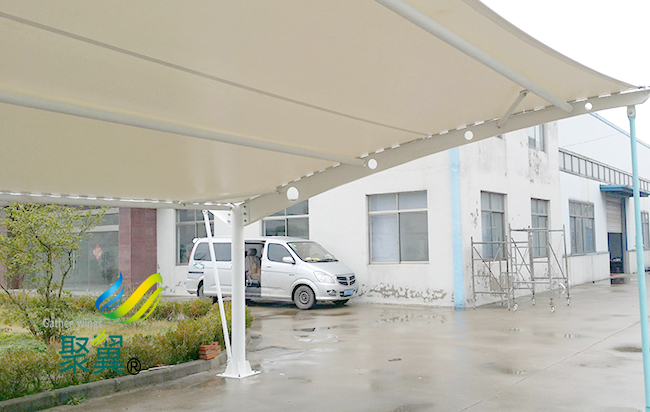 膜結構車棚施工周期短表明膜工程中所有加工和制造依描繪均可在工廠內完結,在現場只進行裝置作業,比較傳統膜結構車棚修建的施工周期,膜結構車棚簡直要快一倍。