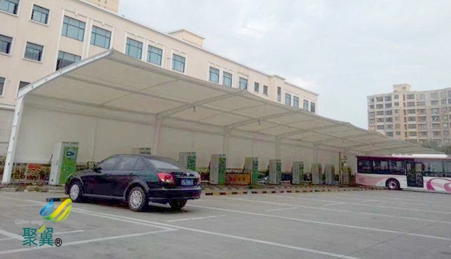 膜結(jié)構(gòu)車棚又叫張拉膜結(jié)構(gòu),是21世紀(jì)最具代表性的建筑形式。打破了純直線建筑風(fēng)格的模式,以膜結(jié)構(gòu)車棚獨(dú)有的優(yōu)美曲面造型,簡潔、明快、剛與柔、力與美的完美組合。