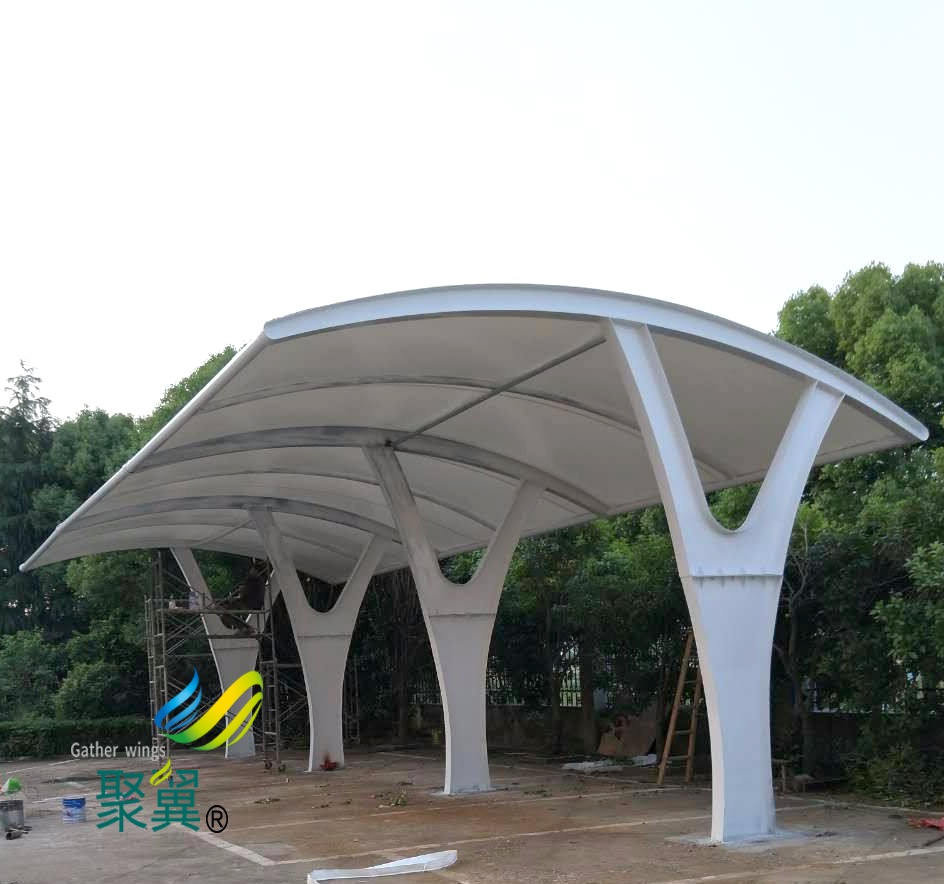 膜結構車棚鋼膜銜接|膜結構車棚強度高膜材