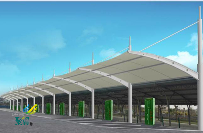 膜結構車棚防火性與抗震性,膜結構建筑所采用的膜結構車棚膜材具有卓越的阻燃性和耐高溫性,故能很好的滿足防火要求。 膜結構車棚PVC對氧化劑、還原劑和強酸都有很強的抵抗力、材料用途極廣、  膜結構車棚具有加工性能良好、制造成本低、耐腐蝕、絕緣等良好特點.
