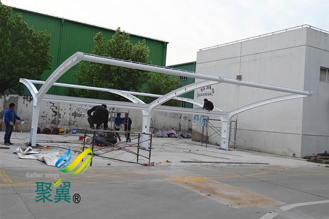 膜結構車棚的防震性是眾所周知的,并且膜結構的裝置快捷、造型優美、膜結構車棚施工周期短、曲面多變性,膜結構車棚變形才能和擴張性導致抗震功能比傳統車棚強一萬倍之多,這也和膜結構車棚的結構組成分不開的。