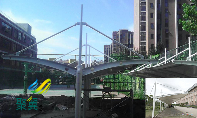 其次就是跟著我們的生活水平的賡續進步,我們關于膜結構車棚的要求也是適當高的,和一樣平常的車棚比較,我們的膜結構車棚張拉蓬骨架多是選用高檔別的鋁合金組合而成的,我們肯定要做好相干的保養珍愛辦法才行,只要如許才可以保證我們的作業愈加持續正常的進行下去,不會呈現太大的影響和危害,也不會影響到車輛的功能。膜結構車棚遮陽雨棚索膜結構是用高強度柔性薄膜材料經受其它材料的拉壓作用而形成的穩固曲面,能承受肯定外荷載的空間結構情勢。膜結構車棚的出現為建筑師們提供了超出傳統建筑模式以外的新選擇。