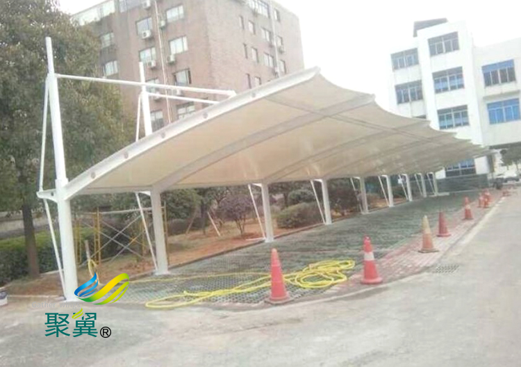 單位或公共場(chǎng)所安裝膜結(jié)構(gòu)車(chē)棚供愛(ài)車(chē)停放車(chē)輛,車(chē)棚比較輕巧、造型別致、因此現(xiàn)在很多停車(chē)場(chǎng)和候車(chē)廳等地方都選擇使用膜結(jié)構(gòu)來(lái)做車(chē)棚。