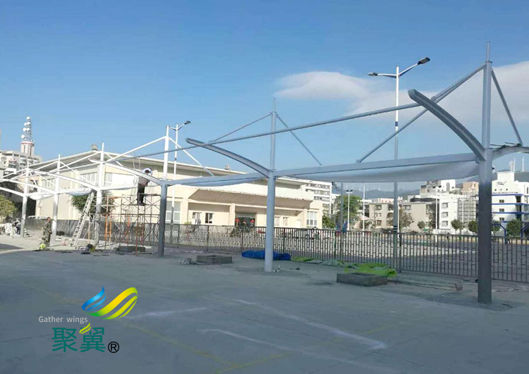 膜結(jié)構(gòu)車(chē)棚的施工圖片安裝視頻哪里找聚翼