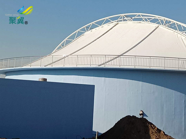 膜材撕裂強度;關于張拉膜結構來說,它們在撕裂方面遭受的損壞比直接遭到拉伸的損壞要嚴峻的多,所以材料的撕裂強度和抗撕裂性能**重要。PVC涂覆聚酯長絲織物具有中等的撕裂強度,PTFE涂覆玻璃纖維的材料具有較高的撕裂強度。加強覆膜織物的撕裂強度低于上述兩種材料,覆膜織物的撕裂強度就*低了。膜材性能的優勢能夠*大程度的提高膜加蓋的廢氣收集效率,然后到達凈化空氣的效果。所以,在對污水池進行膜加加蓋的時分,膜材性能好壞是關鍵。